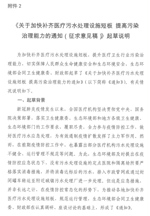 公開征求《關于加快補齊醫(yī)療污水處理設施短板